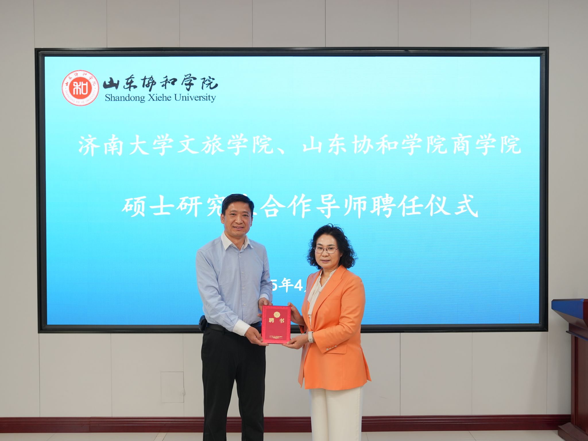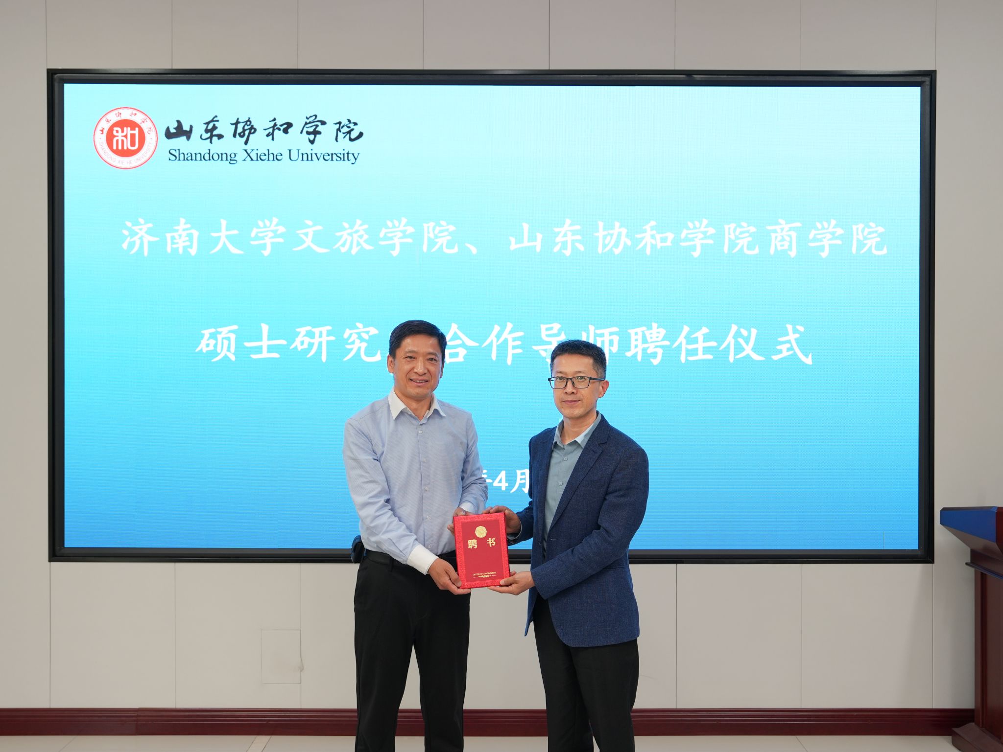随后孟德洋向bat365官网研究生院聘任的山东协和学院的3位MTA兼职校外指导教师(合作导师)颁发了聘书,标志着双方在人才培养和学术研究方面的合作进入了一个新的阶段。