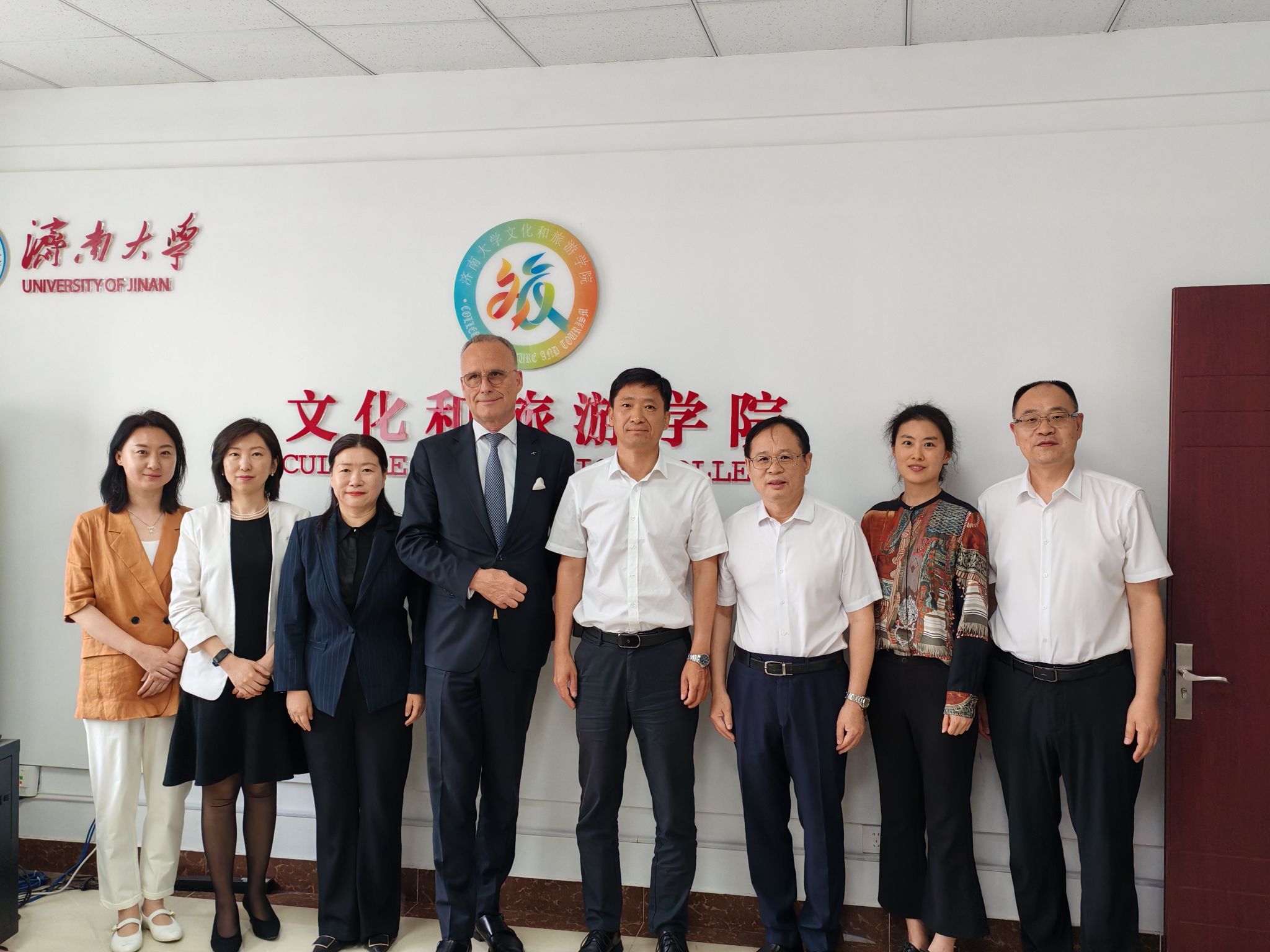 5月28日,济高控股酒管公司副总、96届优秀校友程洁,济南凯宾斯基酒店总经理Mr. Markus一行到访bat365正版唯一官网,开展以“校企协同创新、共育文旅人才”为主题的座谈交流。bat365正版唯一官网党委书记孟德洋、院长刘建波及教师代表参加座谈会。