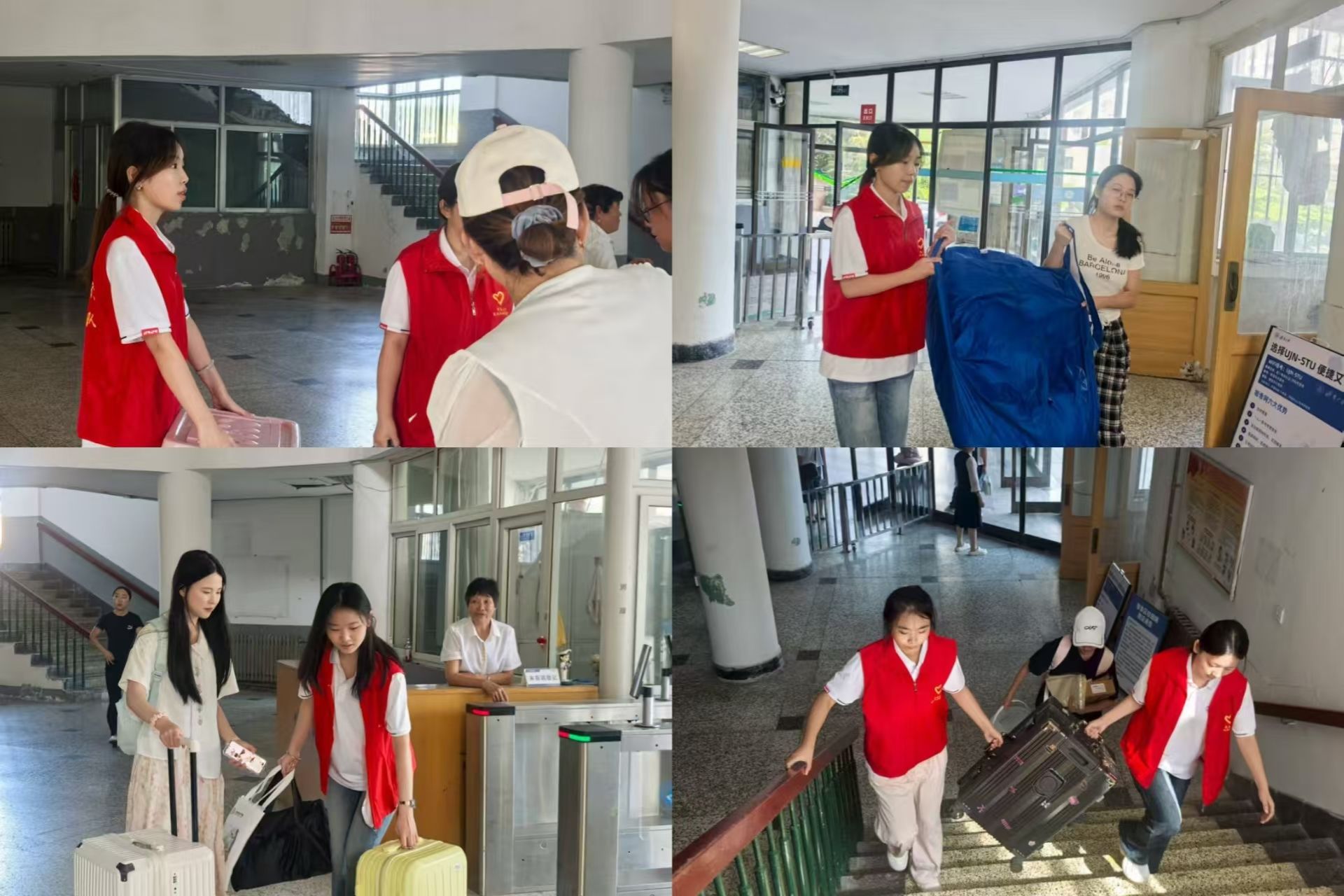 宿舍楼下,志愿者们积极提供搬运服务。他们扛着行李箱、提着包裹,领着新生一起前往宿舍。志愿者们的关怀还不止搬运行李,更有贴心实用的“宿舍生活指南”。从物品收纳小窍门到与舍友相处之道,这些源于亲身经历的实用建议,能够帮助新生们快速适应宿舍生活,融入新集体。