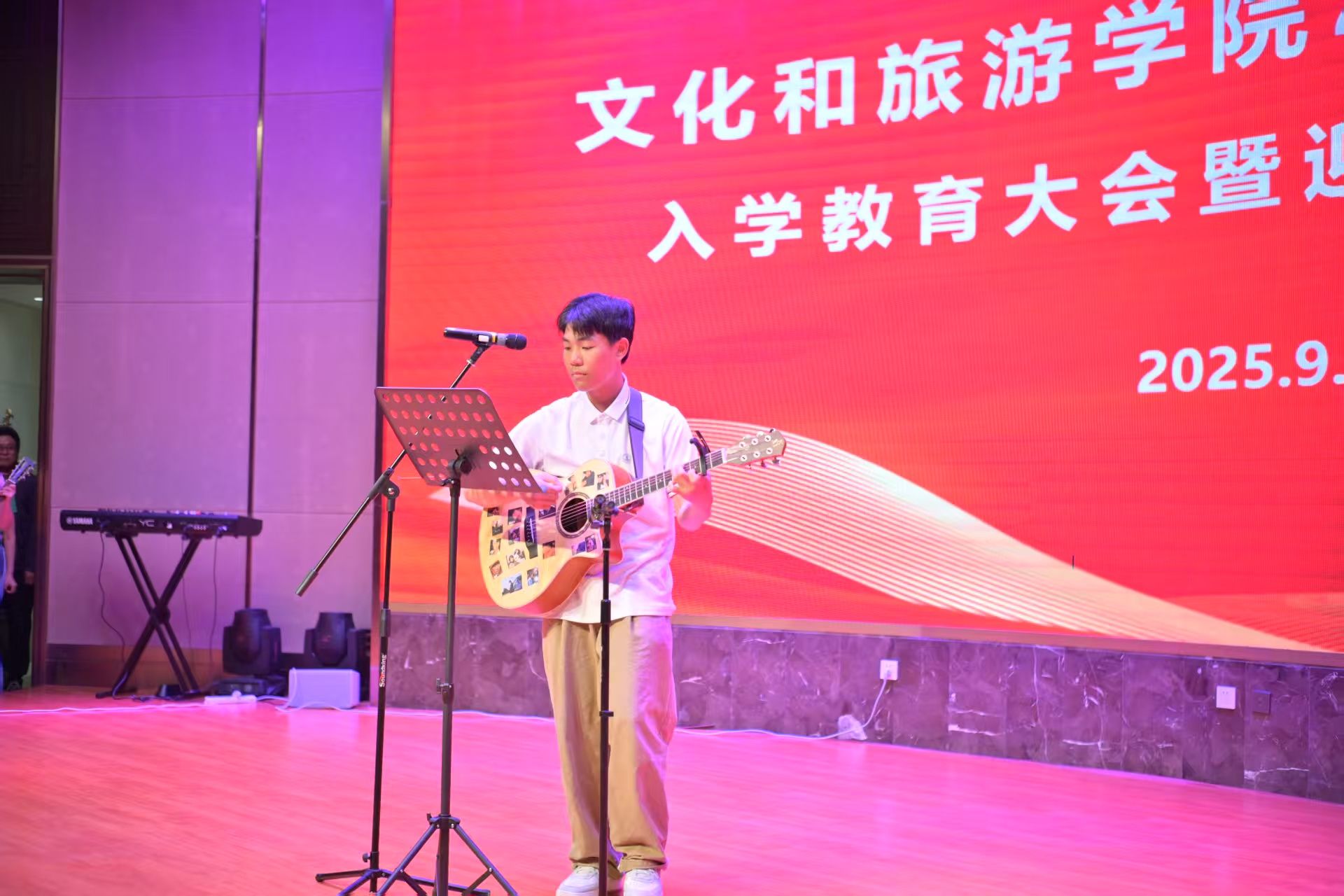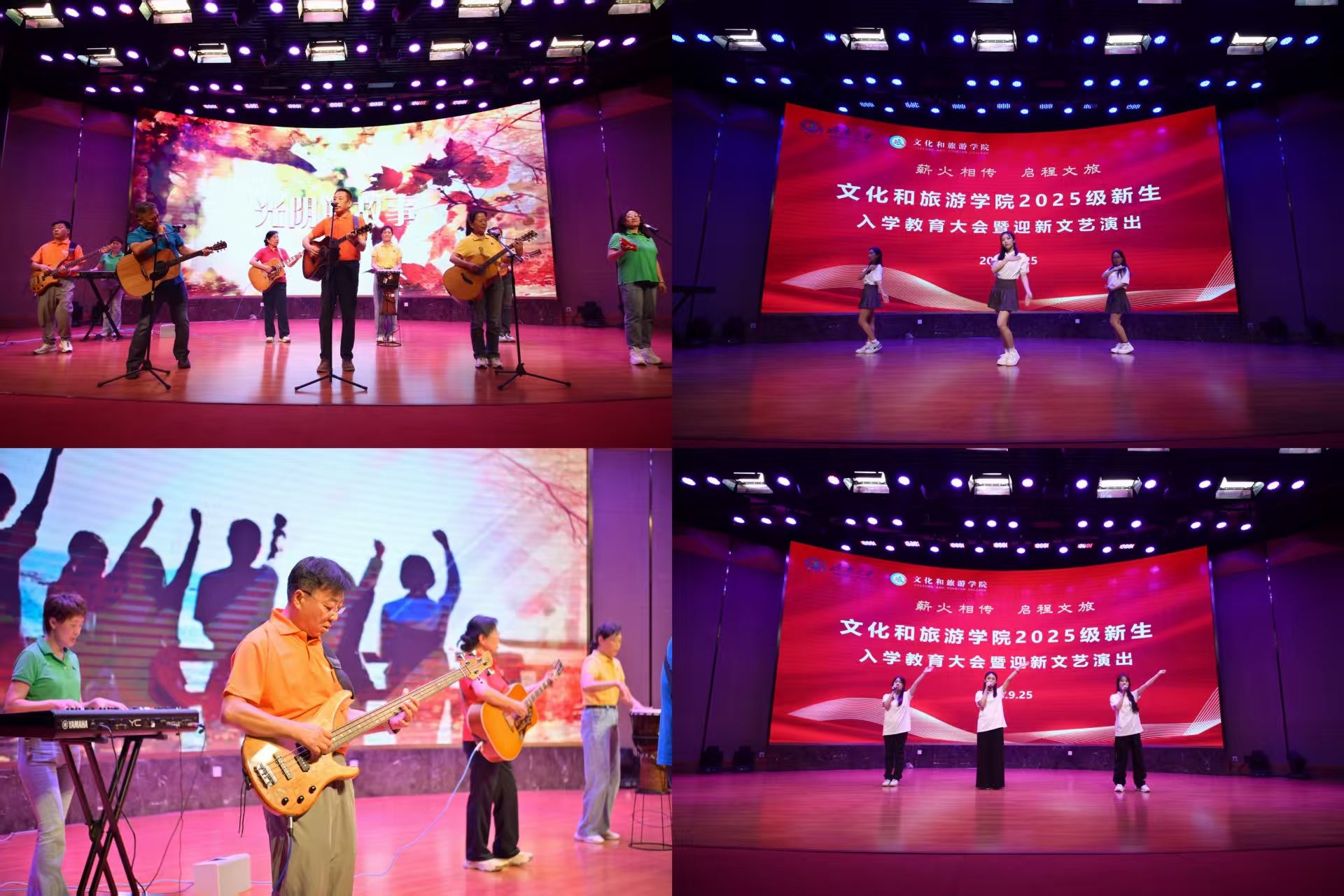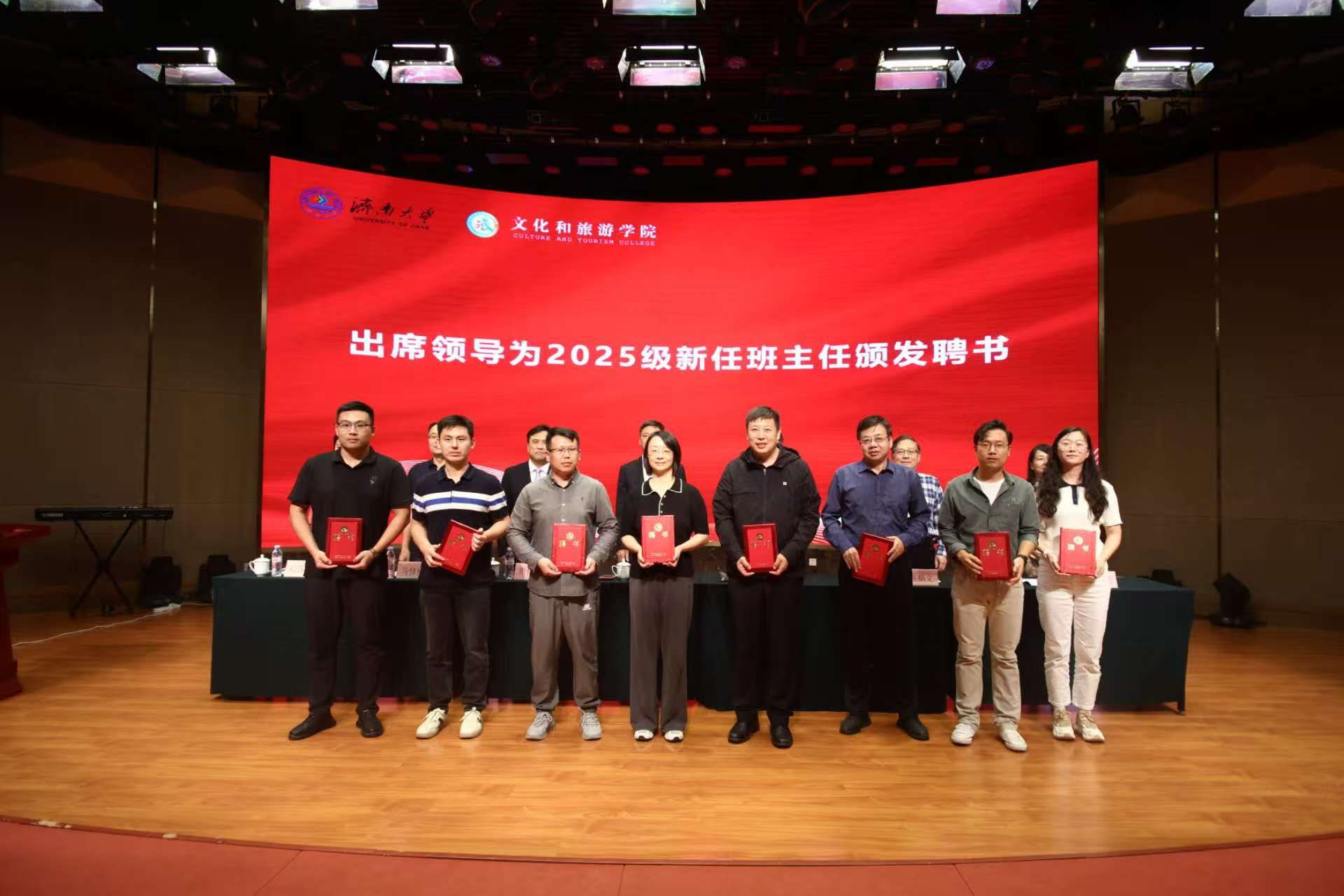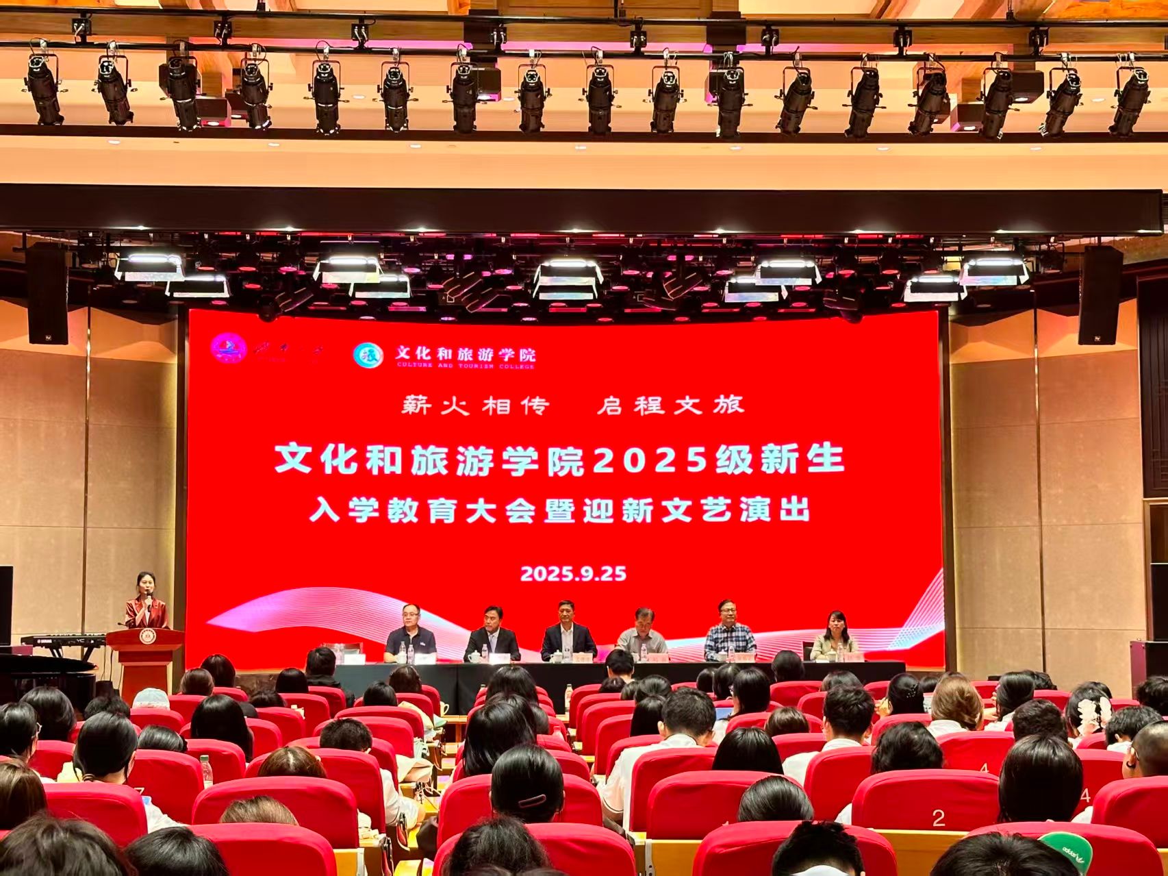 9月25日下午,bat365正版唯一官网“薪火相传 启程文旅”2025级新生入学教育大会暨迎新文艺演出在济南老年人大学报告厅隆重举行。学院全体党政领导班子成员,各系教师代表、全体辅导员、新生班主任以及2025级全体本科生和研究生共同参加了这场青春盛典。