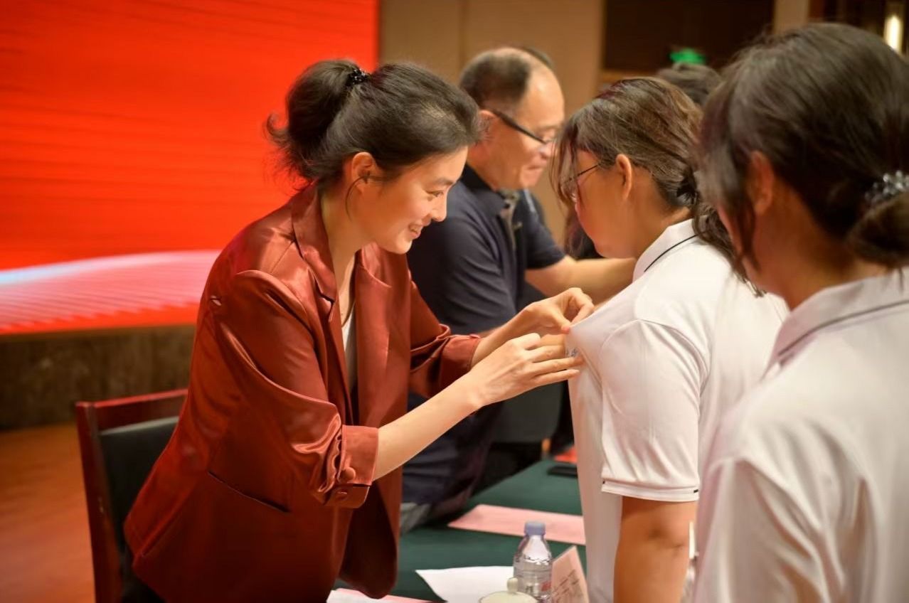 典礼上,学院领导分别为新任班主任老师颁发了聘书,并为2025级新生代表佩戴校徽。