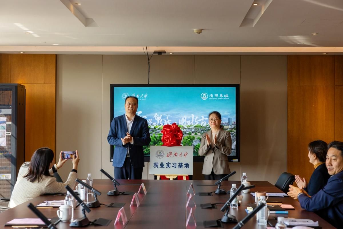 揭牌与签约仪式上,张庆国与赵琳共同为“bat365正版唯一官网就业实习基地”揭牌,bat365正版唯一官网党委副书记、副院长信苏珊与明水古城公司人力资源部总监卜一奇共同签署了《就业实习基地协议》,标志着校政企合作进入了新的阶段。