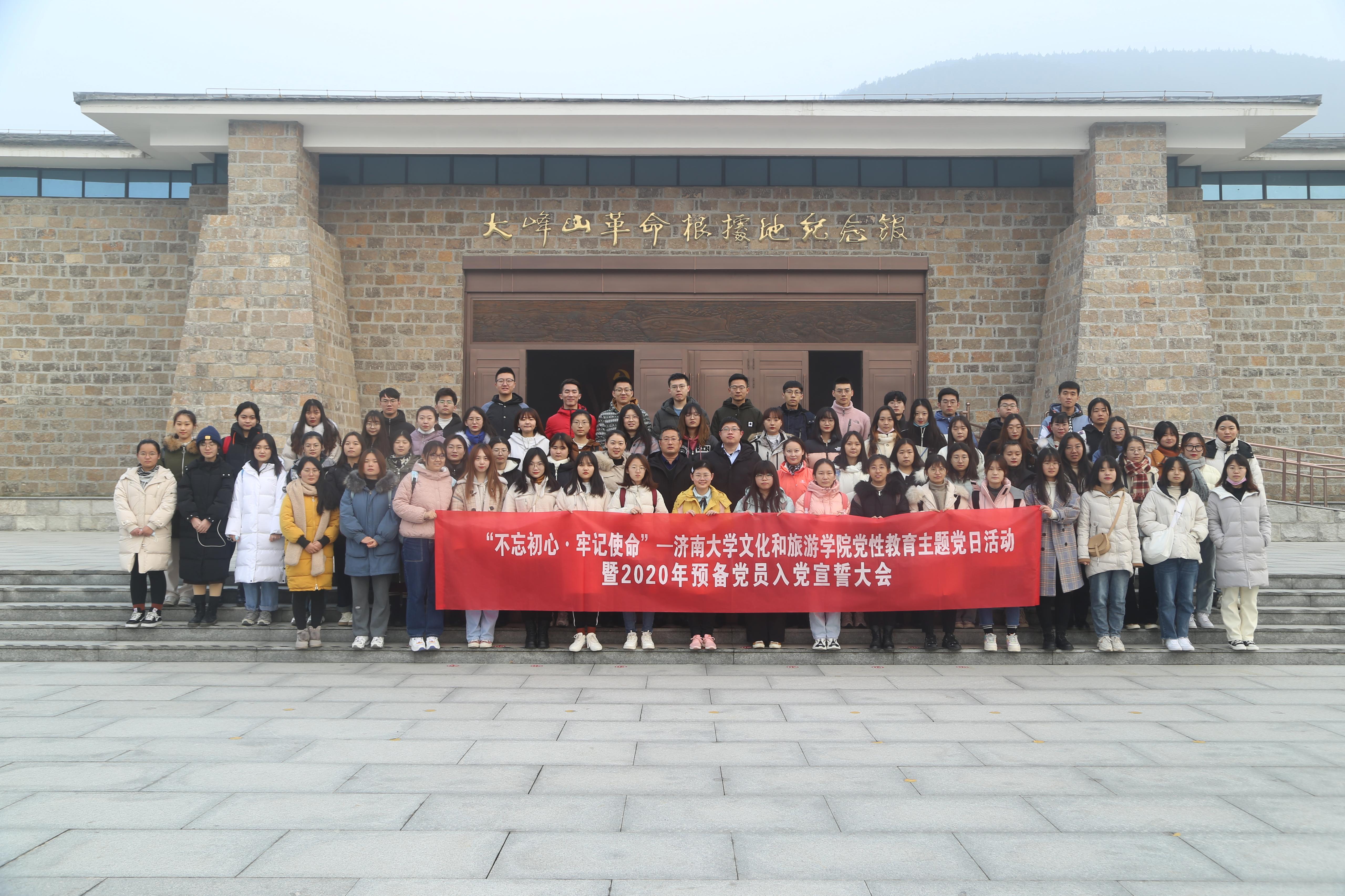 为进一步巩固“不忘初心、牢记使命”主题教育成果,传承红色基因,坚定理想信念,强化党性锻炼,在传承中砥砺责任担当,在奋斗中坚守初心使命,12月11日,bat365正版唯一官网bat365正版唯一官网党性主题教育暨2020年预备党员入党宣誓大会在长清区大峰山党性教育基地举行,学院67名预备党员、教师党员代表参加大会。