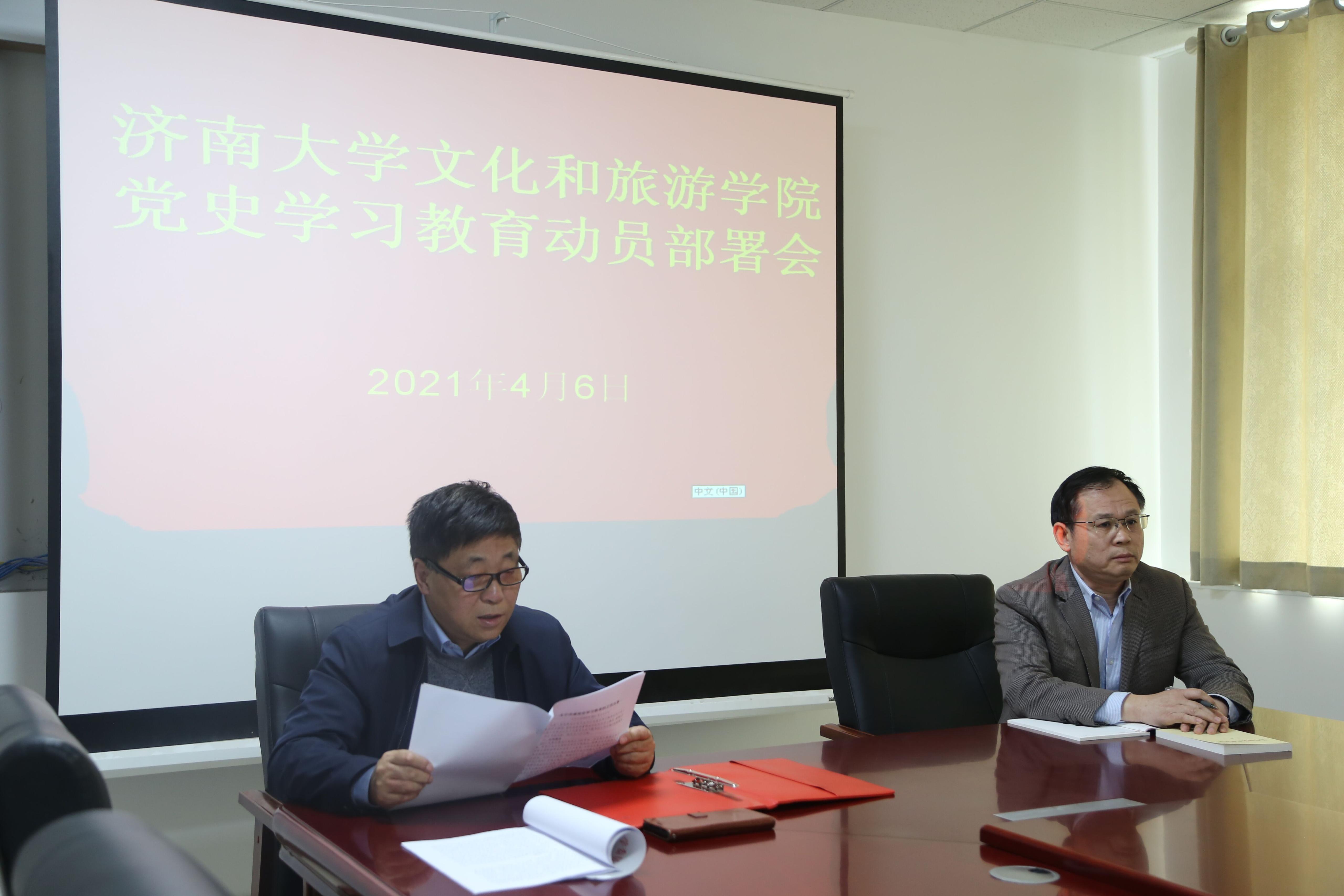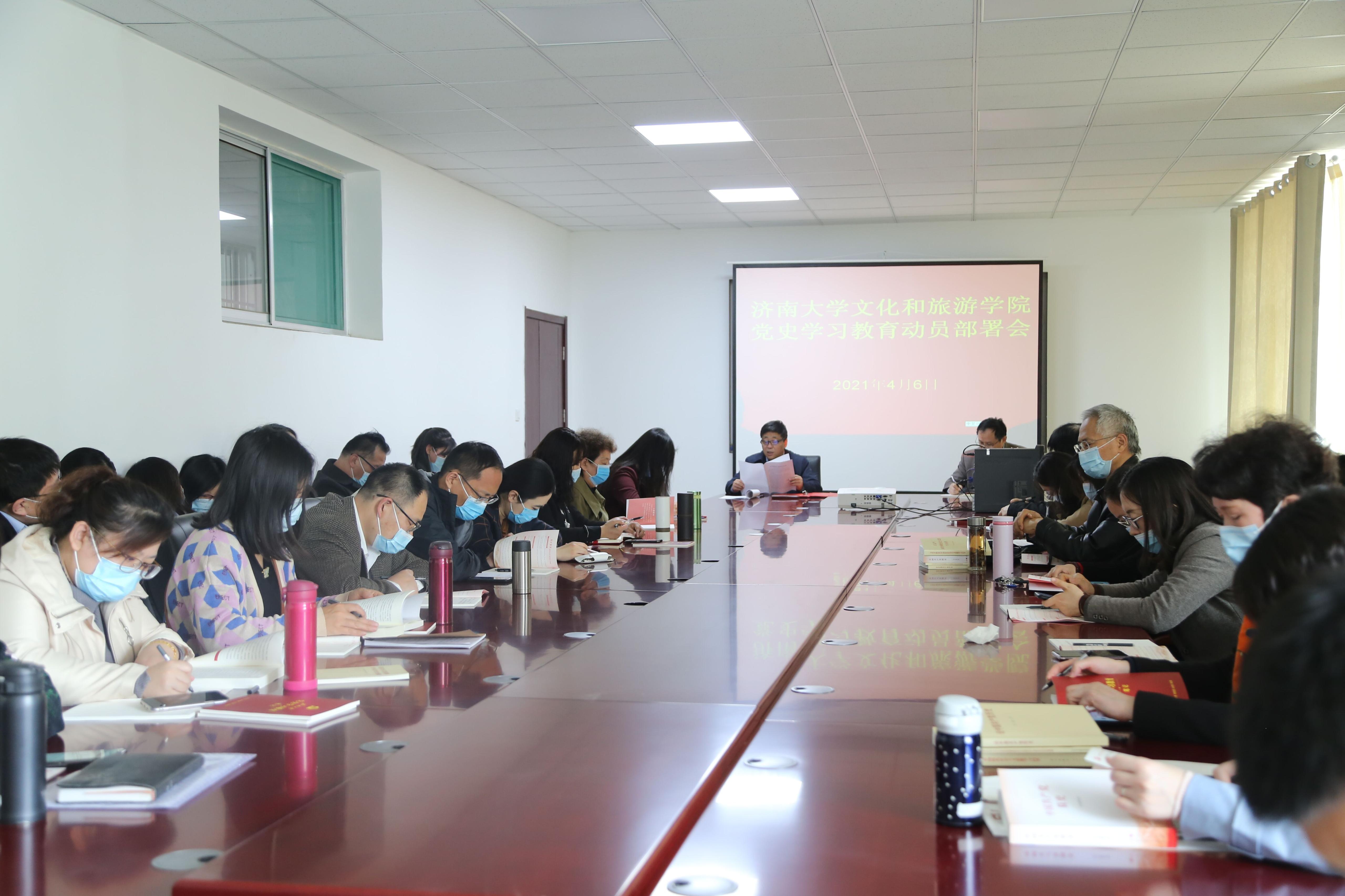 为深入贯彻落实习近平总书记在党史教育动员大会上重要讲话的精神,bat365正版唯一官网根据学校党史学习教育工作的总体要求,于2021年4月6日下午两点半在bat365正版唯一官网舜耕校区文旅楼212会议室举行“党史学习教育”动员部署会。会议由学院党委书记朱海涛主持,院长刘建波和全体教工党员参加。