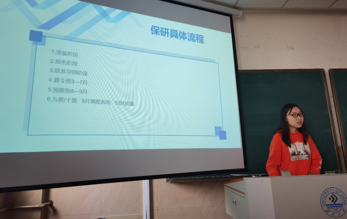 交流会上,6位考研学生代表分享了保研、考研流程及经验,并详细说明了各个复习阶段的学习方法及注意事项。此次分享会,不仅给励志考研的同学指引了方向,还为准备考研的同学们提供了宝贵的经验。通过6位大四考研同学的分享,2018级大三的同学们对考研有了更具体、更清晰的认识,也对考研有了更加坚定的信心。
