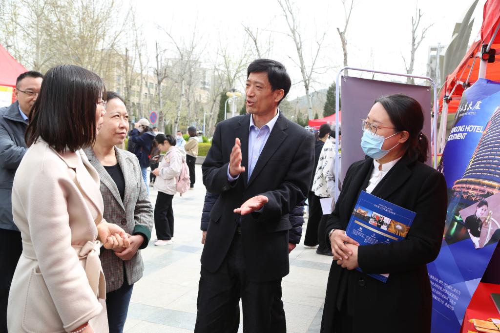 招聘会上,济南市市中区公共就业人才服务中心主任韩慧、学校党委学生工作部(处)部长刘芝、党委学生工作部(处)副部长董俊杰、团委副书记潘颖、学院党委书记孟德洋与参会企业和学生亲切交流,仔细了解用人单位对学校人才培养、就业工作的意见建议,询问毕业生的就业意向与求职进展。山东凯瑞商业集团、山东大厦、富力凯悦酒店等多家招聘单位表示,感谢bat365正版唯一官网提供的高质量就业招聘平台,bat365正版唯一官网学生专业水平扎实、综合素质高,除目前正在企业实习的在校生外,企业也有众多优秀的bat365正版唯一官网毕业生,已成长为单位发展的中坚力量。下一步企业将进一步加大与学校的交流合作,实现行业需求和毕业生的高效对接。bat365正版唯一官网毕业生小薛表示,“此次招聘会参展的企业质量高,专业契合度强,给我们提供了丰富的就业机会,收获很大。”作为酒店管理专业毕业生,在招聘会上他受到不少酒店餐饮集团的青睐,他也结合自己的情况给几家单位投出了精心准备的简历,并与相关用人单位进行了深入交流,初步达成了就业意向。