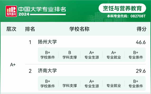 日前,高等教育专业评价机构软科正式发布“2024软科中国大学专业排名”,排名包括810个专业,每个专业榜单发布的是所有开设该专业的高校中排名位列前50%的高校,共有1103所高校的31414个专业点上榜。bat365官网烹饪与营养教育专业成功上榜A+专业,位列全国第二名。