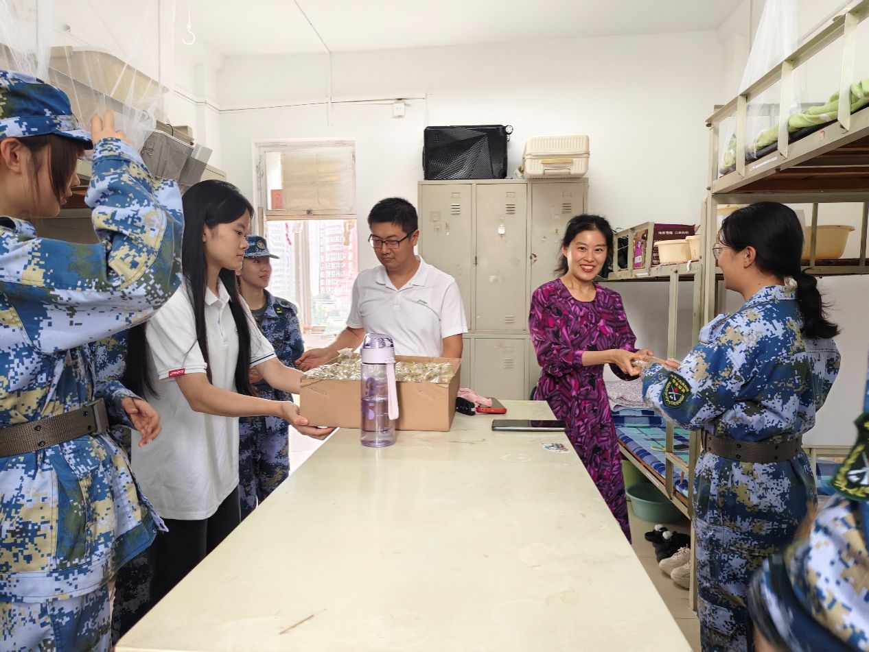 学院党委副书记、副院长信苏珊,2024级新生辅导员吕龙飞,深入宿舍、军训训练场与2024级新生共庆团圆,为新生送上学校定制的中秋月饼,并送上温馨的中秋祝福和学院关怀。信苏珊在走访宿舍时与新生们亲切交谈,询问他们入校以来的适应情况、军训感受及未来规划,鼓励他们珍惜大学时光,勇于探索,全面发展。同时,她还耐心解答了新生们关于学习、生活等方面的疑问,让初入校园的新生们感受到了家一般的温馨与呵护。