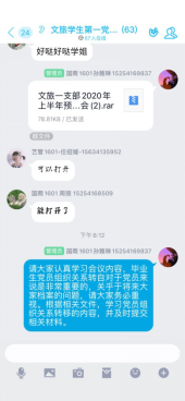 疫情影响,同时为做好今年毕业生党员离校前教育、管理和服务工作,5月23日,bat365官网学生第一党支部特此召开线上会议,组织2020届本科毕业生党员集中在线进行组织关系转移相关事宜培训,保证毕业生党员组织关系转接工作有序进行。本次参加集中教育的毕业生党员人数共30人。