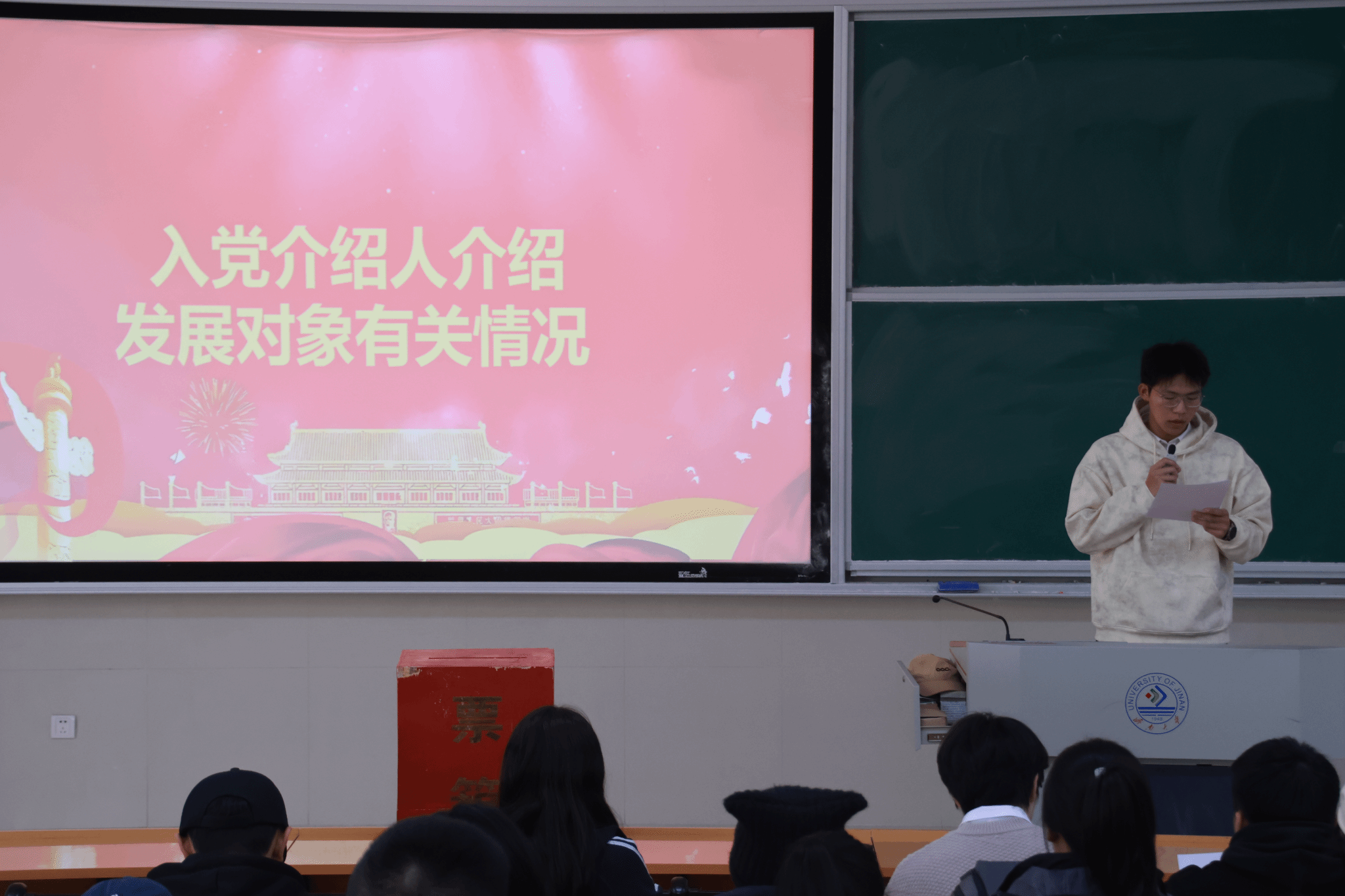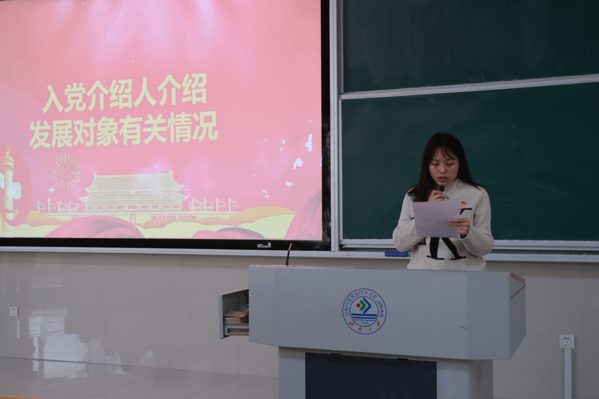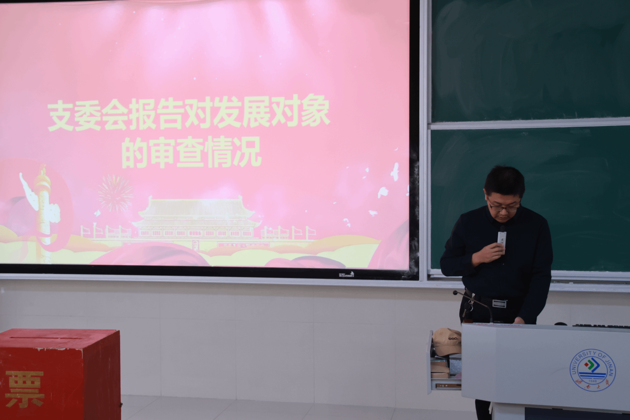 为进一步做好发展党员工作,强化党员队伍生机和活力,扎实做好基层党组织工作,加强党员队伍建设,不断增强党组织的凝聚力、战斗力和创造力,2024年11月26日,bat365正版唯一官网bat365正版唯一官网党支部在舜耕校区D3J102教室召开了接收新发展党员会议,本次大会主要讨论接收尹文琪等 43 名党员发展对象为中共预备党员的事项,由马驰原同学主持。