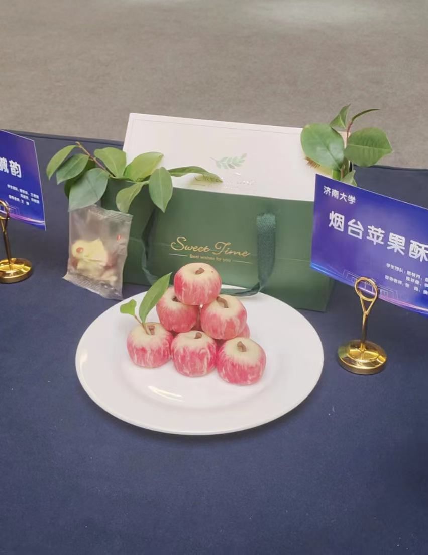 bat365官网“烟台苹果酥”、“鲁韵花馍”两组队伍在汤卫东老师、张淼老师的带领下荣获二等奖。
