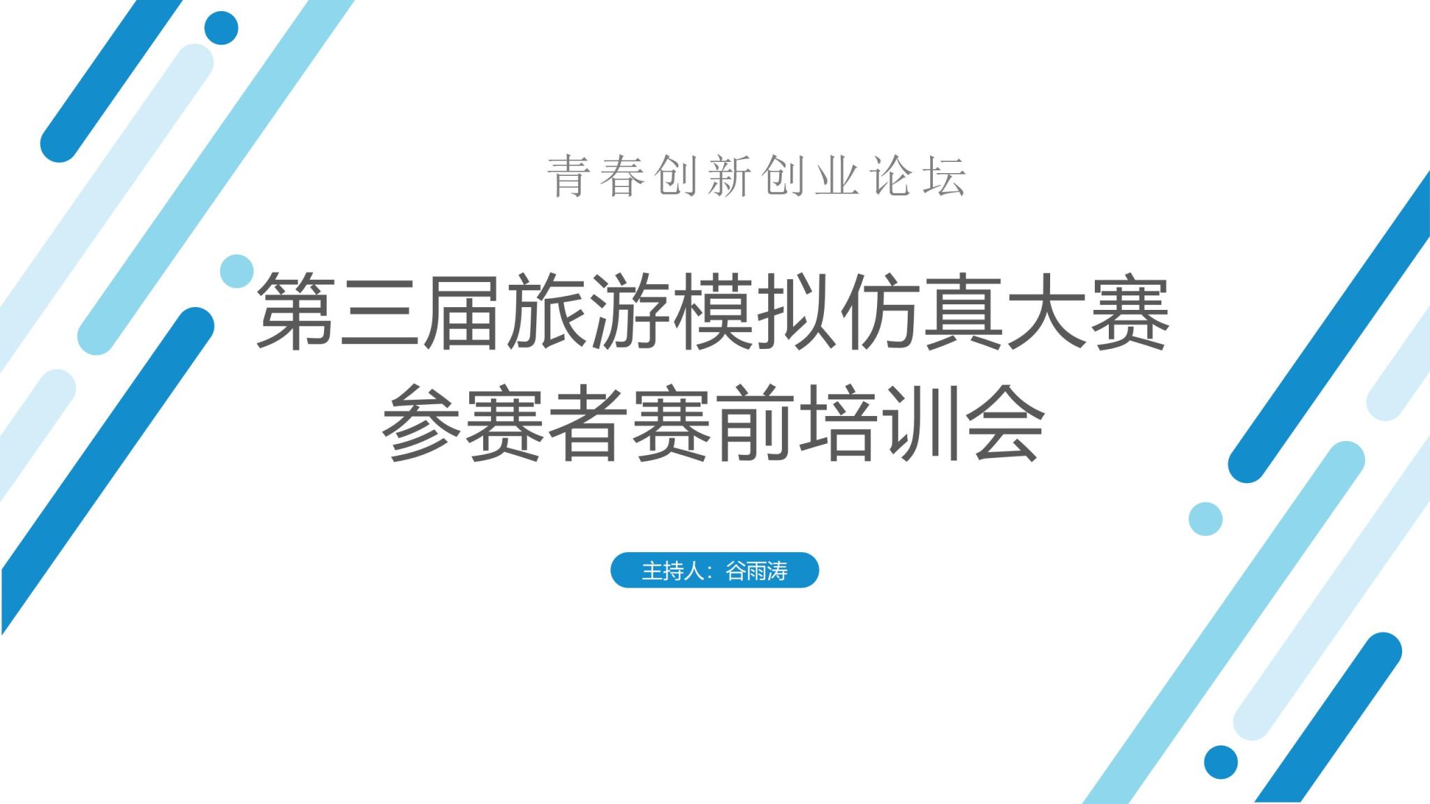 2024年5月27日,bat365正版唯一官网举办青春创新创业论坛——第三届旅游模拟仿真大赛参赛者赛前培训会。该活动于19:00在D3J201举行,主持人为创新创业部谷雨涛同学。
