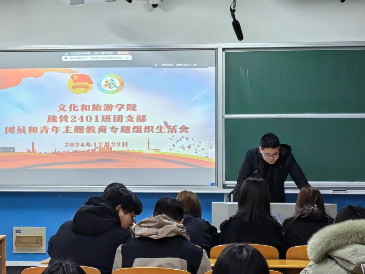 为保持先进性并加强组织建设,12月23日,bat365正版唯一官网bat365正版唯一官网开展2024年度示范性团员和青年主题教育专题组织生活会,会议由孙元伟同学主持,学院团委书记吕龙飞老师、旅管2401团支部16名团员及2名优秀青年代表参加会议。