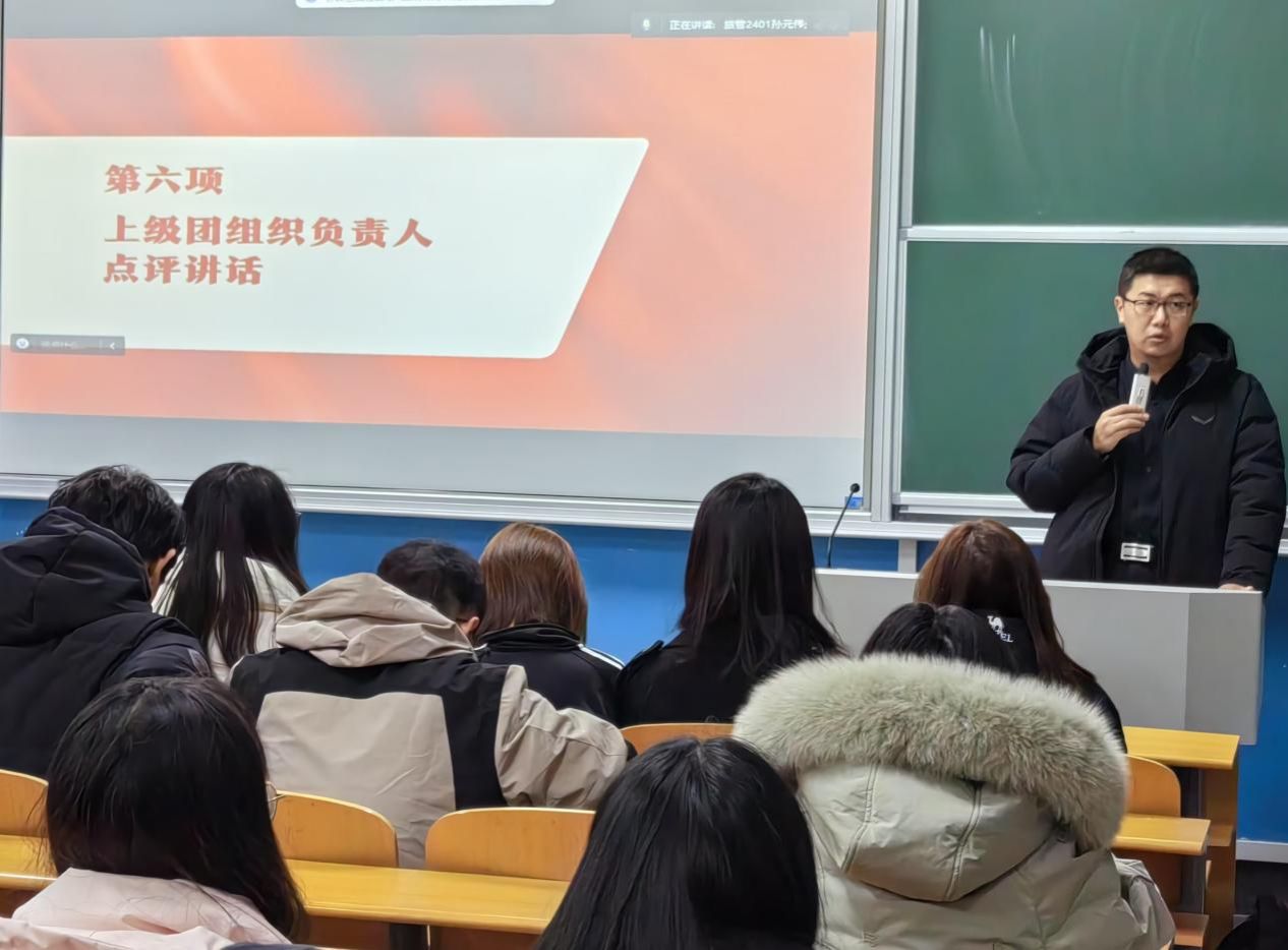 会议伊始,旅管2401团支部书记孙元伟报告团员和青年主题教育开展情况,随后,团支部副书记、委员、其他团员依次发言,在交流中查找不足。其他团员对其进行评议,肯定成绩,指出不足。其中,评议包括团员评议和民主评议,组织以团支书孙元伟、副团支书张泳秋、宣传委员郁菀茹三位同学为代表,在思想、工作、学习等方面的表现进行了综合评价。此外,学院团委书记吕龙飞老师对本年度的团员组织生活会进行了点评讲话,为团支部下一步的工作方向提供明确的指引,帮助团支部在未来的工作中更好地发挥作用。