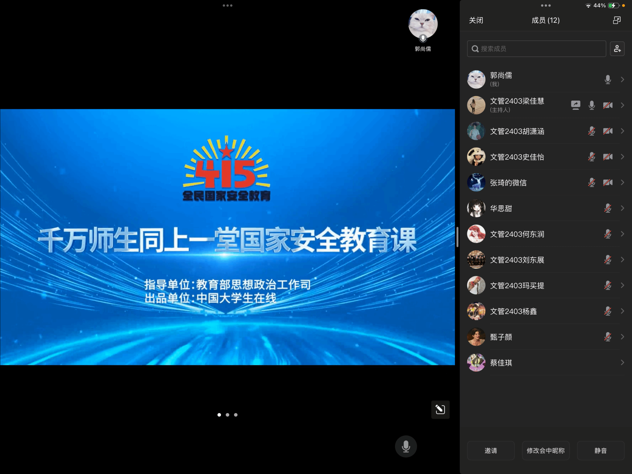 各团支部以“国家安全,青春挺膺”为主题组织专题学习活动,通过观看主题视频学习、开展小组讨论等多样形式,引导青年学子深入理解国家安全的多维度内涵。围绕“数据安全与日常生活”“文化自信与意识形态安全”等话题,同学们积极思辨,观点碰撞。2023级同学张程说:“国家安全不仅仅是关乎边防与国界的坚守,更体现在我们每一个人、每一件小事的日常选择与责任之中。”
