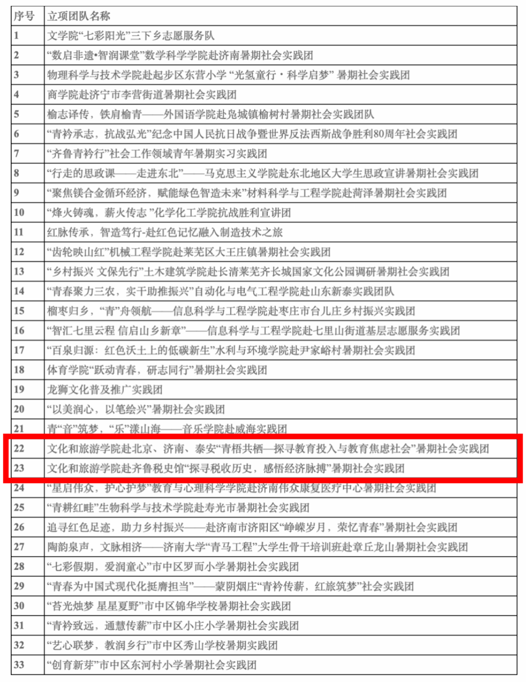 此次暑期 “三下乡” 社会实践活动筹备期间,学院积极动员、广泛宣传,鼓励学生结合专业特色与社会需求组队申报。经团队自主申报、学院团委排序推荐、校团委评审,bat365官网最终确定33支队伍校级重点团队立项。其中,bat365官网赴北京、济南、泰安“青梧共栖-探寻教育投入与教育焦虑社会”暑期社会实践团、赴齐鲁税史馆“探寻税收历史,感悟经济脉搏”暑期社会实践团从众多申报团队中脱颖而出,成功获得校级重点团队立项。