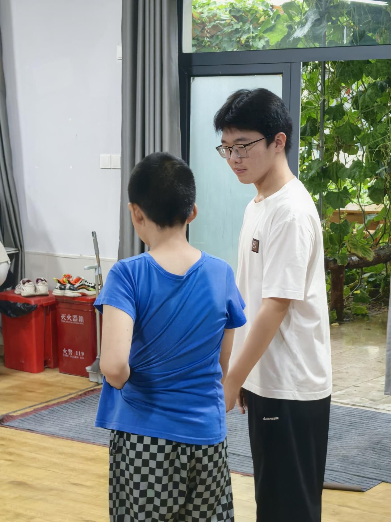 除了陪伴孩子,团队成员还承担起康复中心的环境优化工作:仓库里,他们将物资按类别归置整齐,让每一件物品都有了“固定的家”;货架前,他们仔细擦拭灰尘,将商品码放得井然有序;图书角,他们按主题整理书籍,方便孩子们取阅;垃圾分类环节,他们不仅亲手分拣,还通过简单的图示教孩子们识别不同垃圾的类别。这些看似平凡的劳动,让康复中心的环境焕然一新,更将绿色环保的理念融入实践,让“爱护环境”从口号变成可触摸的行动。