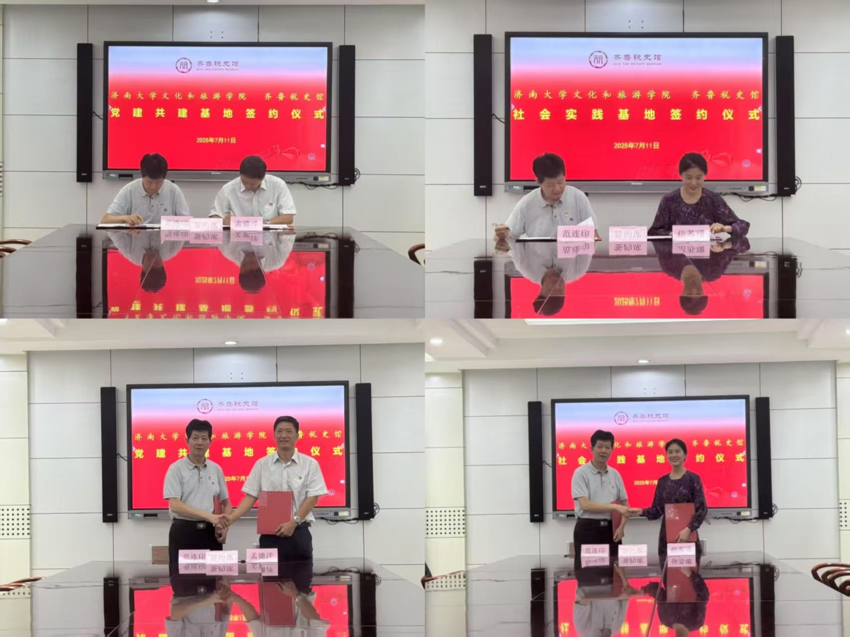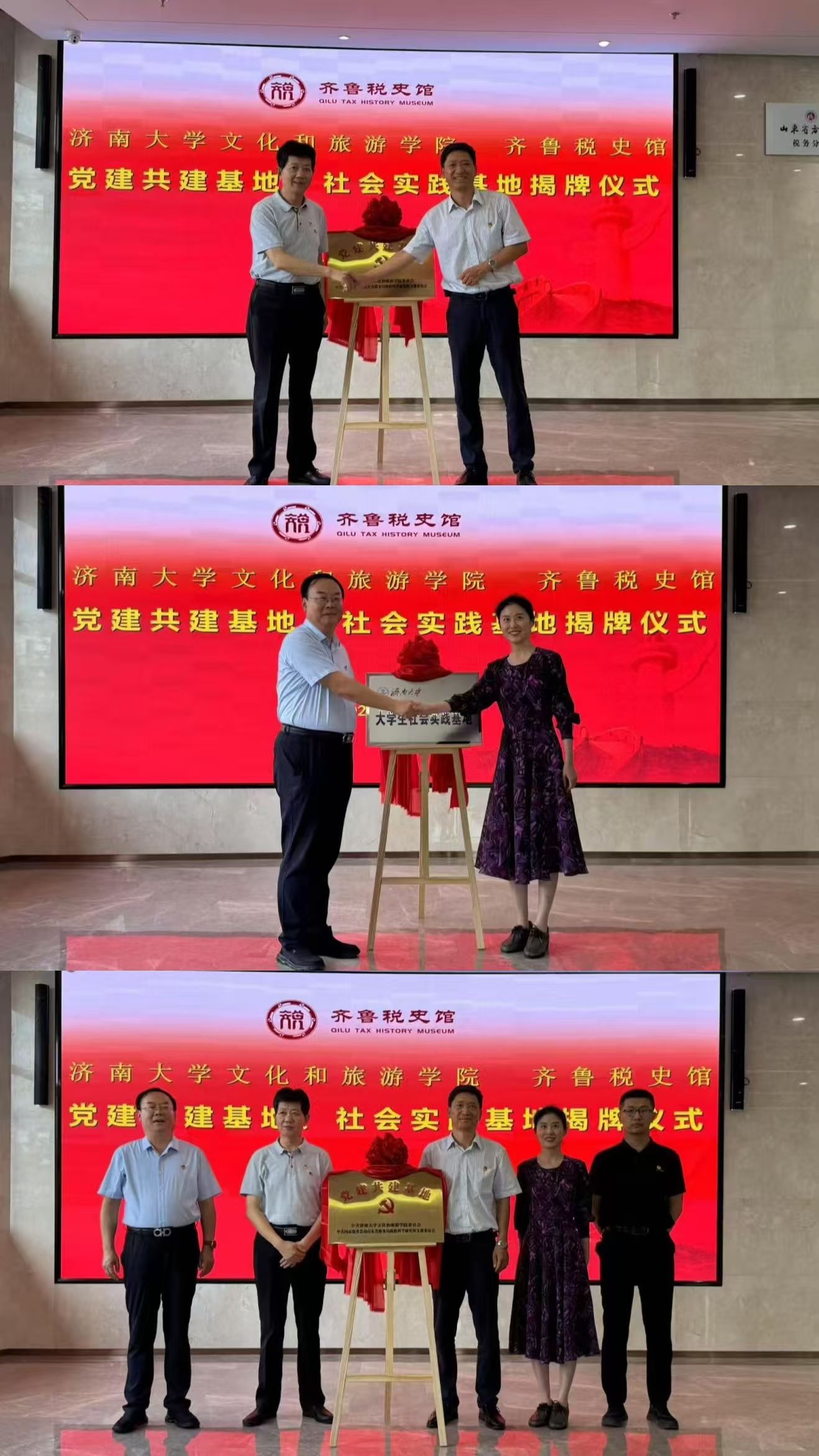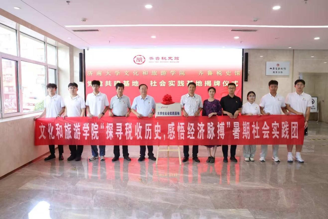 2025年7月11日,bat365正版唯一官网bat365正版唯一官网与齐鲁税史馆合作共建签约暨大学生社会实践基地揭牌仪式在齐鲁税史馆隆重举行。学院党委书记孟德洋,学院党委副书记、副院长信苏珊,学院团委书记吕龙飞以及齐鲁税史馆等相关领导出席活动。此次活动标志着双方在资源共享、协同育人、文化传承创新方面迈出了坚实一步,为文旅学子深入了解国情社情、厚植家国情怀、提升实践能力搭建了重要平台。