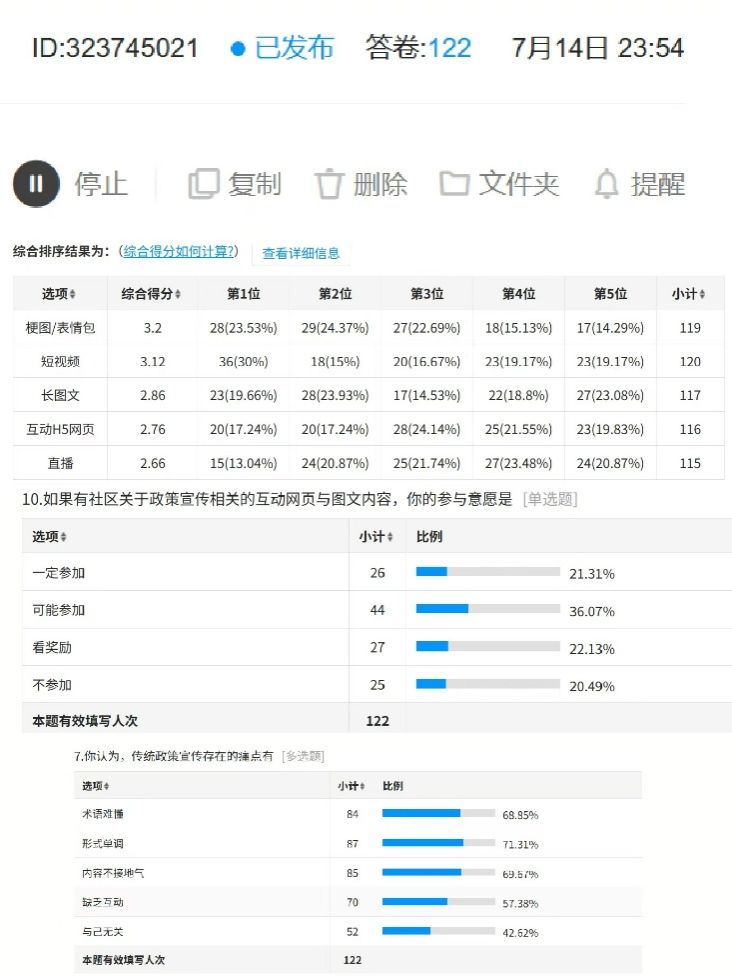 团队同步展开线上调研,依托问卷星平台收集121份有效数据。分析显示:68.85% 的青年认为政策解读“术语难懂”,71.31% 抱怨形式单调,而“方言梗图”“互动H5”等创新形式支持率达80%。文化产业管理专业的张睿涵举着数据图感慨:“青年要的不是‘说教’,是能共鸣的‘嘴替’!。