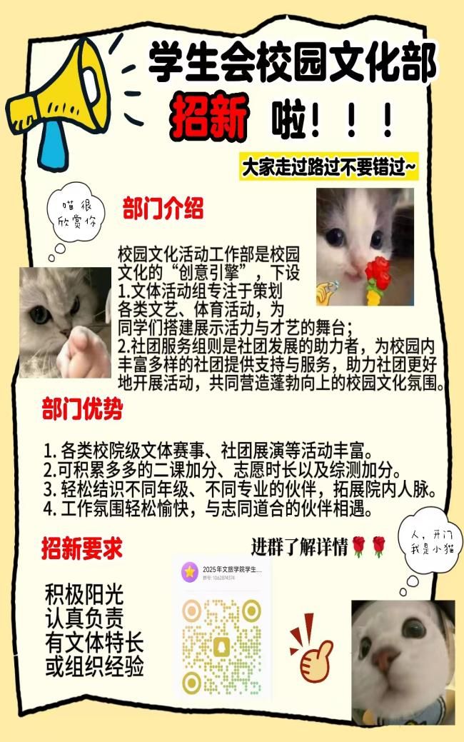 欢迎大家加入bat365正版唯一官网bat365正版唯一官网学生会,报名表、部门咨询及其他招新事宜请进入文旅学院学生会纳新群:1062874374,进群请备注班级姓名哦。
