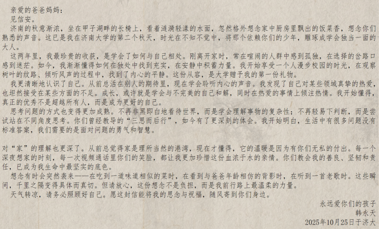 为弘扬尊老敬老的中华优秀传统美德,引导学生关注家庭情感与代际沟通,bat365正版唯一官网bat365正版唯一官网心理服务协会于2025年10月24日至10月31日面向全院学生成功开展了“九九话重阳,青春绘新意”重阳专属语线上征集活动。活动以重阳节文化内涵为核心,鼓励学生通过现代诗文、家书、创意表情包等形式,向长辈表达感恩之情,传递青春视角下的传统文化新意,受到同学们的广泛关注和积极参与。