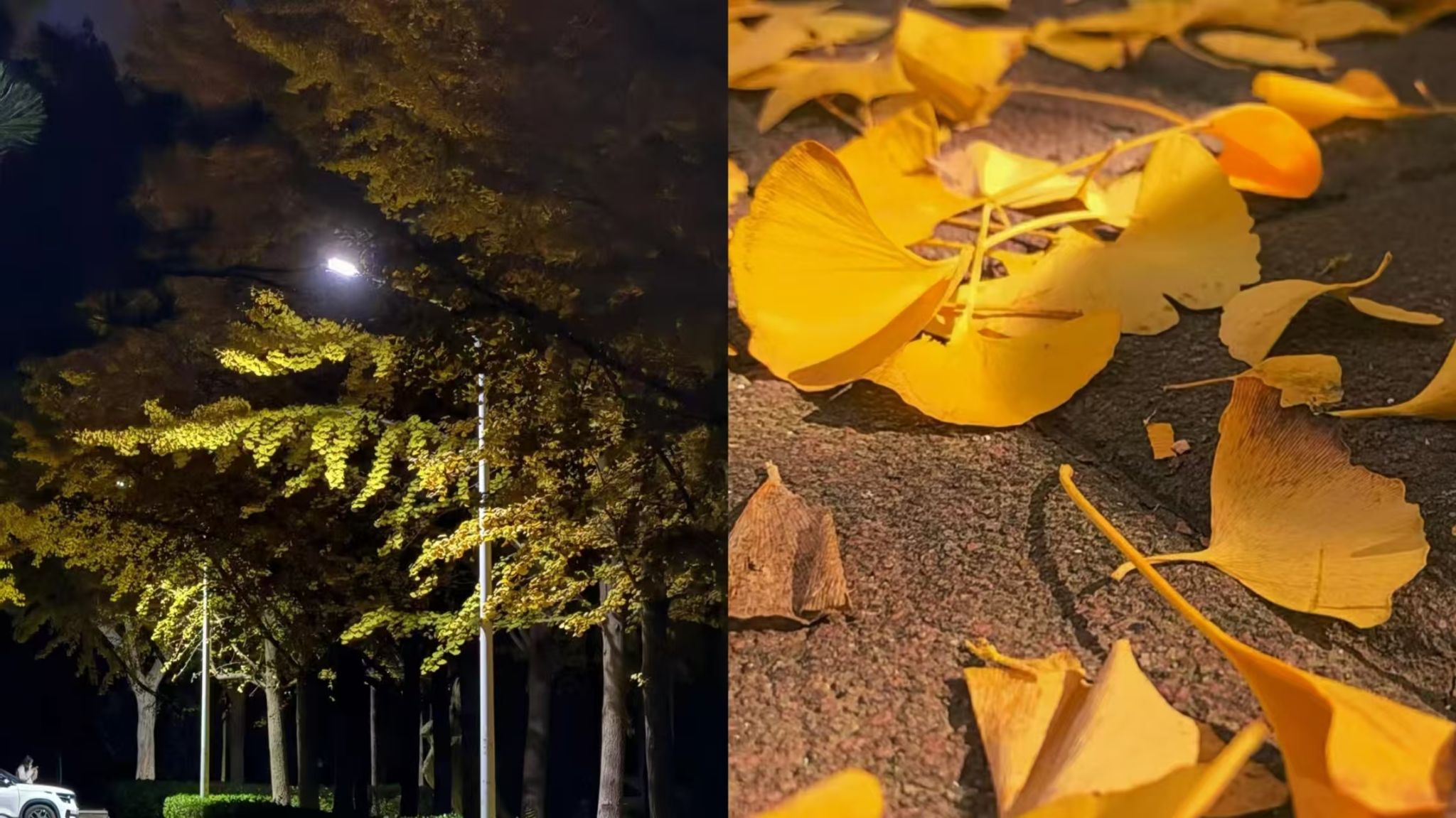 银杏在路灯下晕出暖黄的梦
