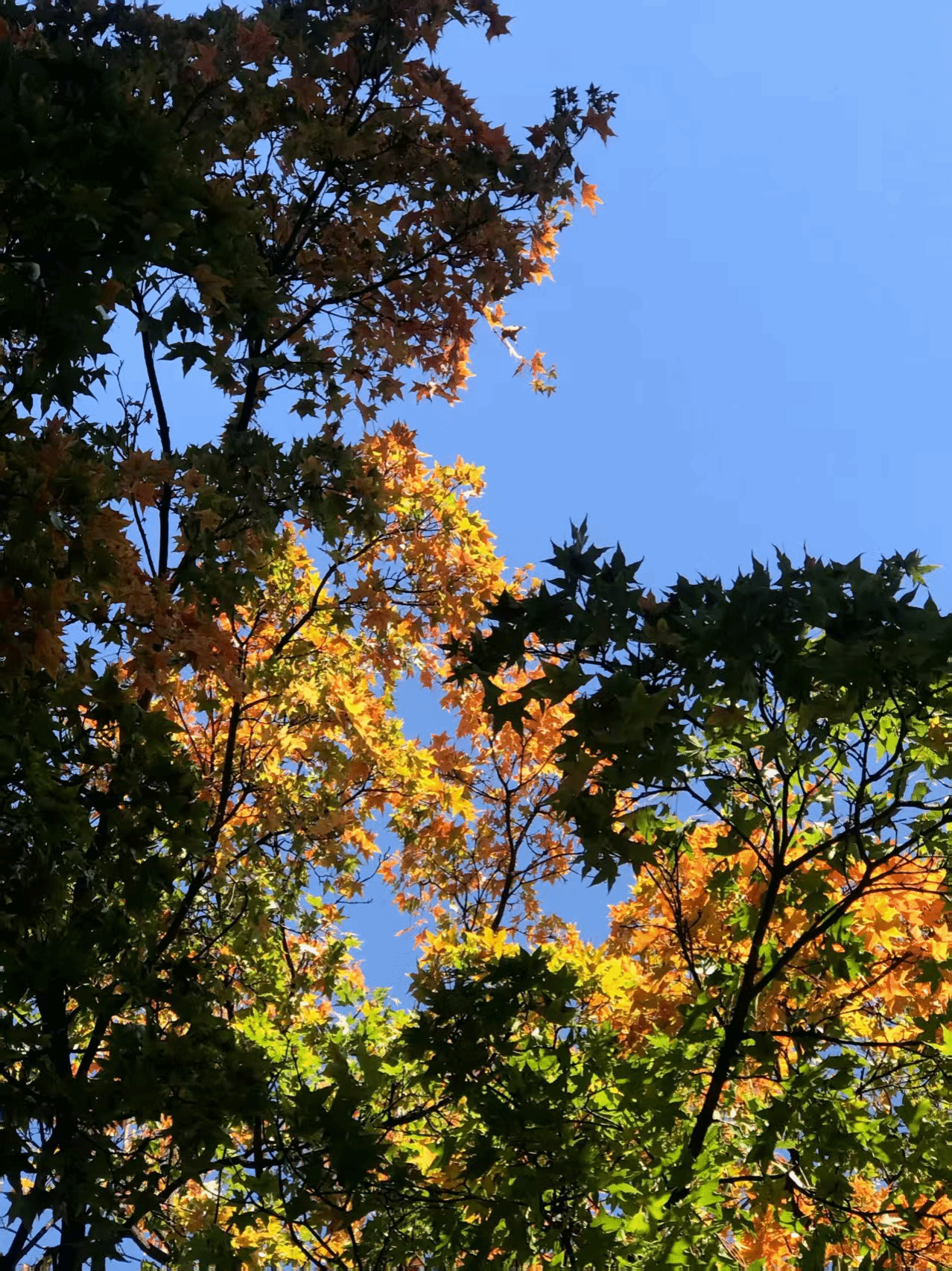 银杏叶在蓝天的幕布上绣出盛装