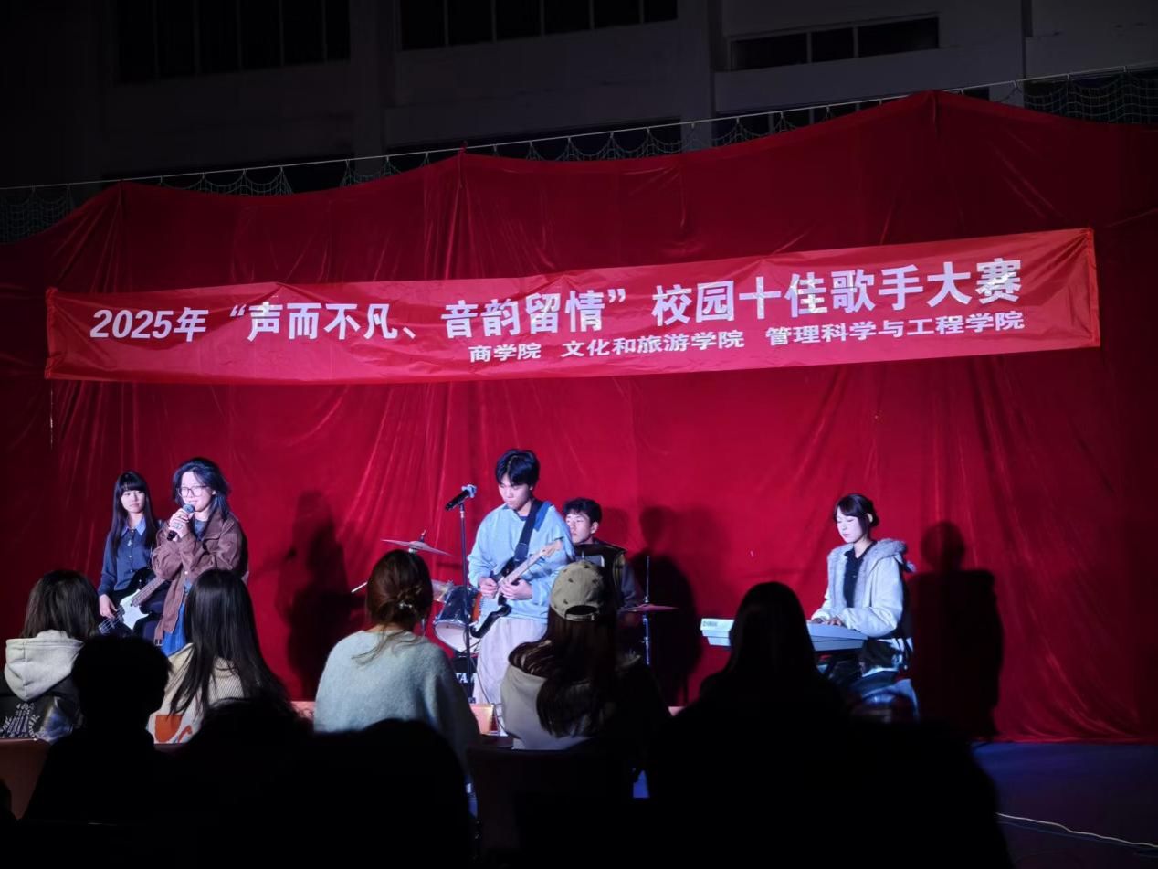 为丰富校园文化生活,营造积极向上的文化氛围,展现青年学子的蓬勃朝气与艺术才华,11月15日晚,由bat365正版唯一官网bat365正版唯一官网团委、商学院团委、管理科学与工程学院团委联合主办的“声而不凡,音韵留情”校园十佳歌手大赛总决赛于舜耕校区隆重举行。大赛由三院学生会及艺术团相关部门共同承办,吸引了众多师生到场观看。