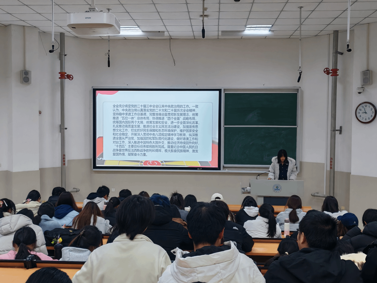 为帮助团员青年更好理解党的二十届四中全会精神,明确个人成长方向,11月24日,bat365正版唯一官网于D3J302教室组织开展“学习党的二十届四中全会精神”主题团日活动,各团支部团员积极参与,现场学习氛围浓厚。