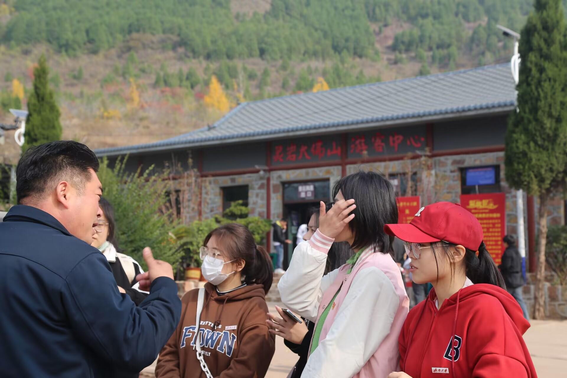 为服务乡村振兴,2022年10月29日,bat365正版唯一官网bat365正版唯一官网的六名学子走进灵岩大佛山景区与当地工作人员进行深入交流,调研文旅融合的详细情况。