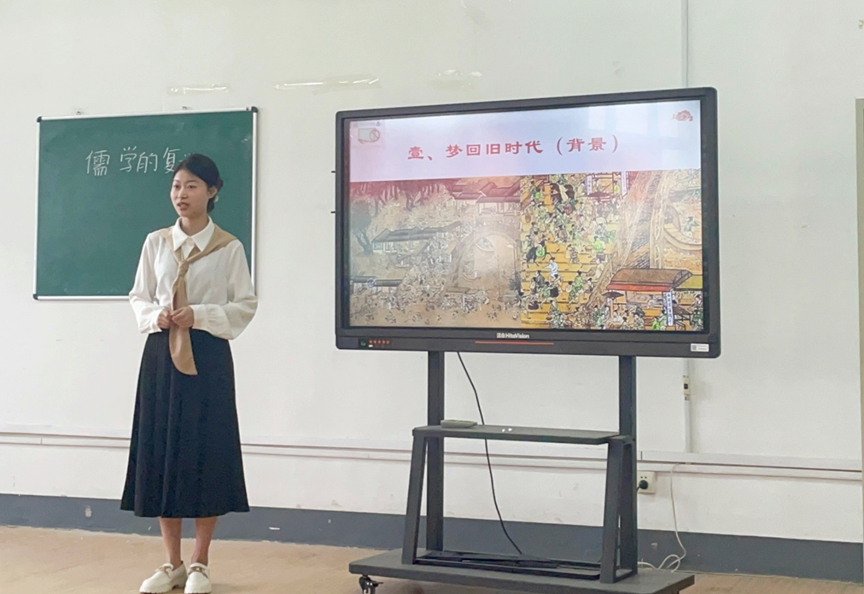 本次比赛分为初中组历史和高中组历史两个赛段,选手按照抽签顺序依次进行展示。比赛中,参赛选手准备充分,课堂教学目的明确,教学过程设计合理,语言表达准确精炼,教学方法独特新颖,充分体现了以学生为本的教育理念。其中选手关淑蕊流畅的讲解,端庄大方、挥洒自如的仪态,展现了bat365官网师范类学生良好的教师风采。孙嫣然选手知识容量科学合理有梯度,精心设计板书,体现了扎实的专业功底和深厚的教学素养。在答辩环节中,评委们针对每个选手进行提问与点评,校外专家张赤指出课堂重点和难点的设置要明确。刘克静提到要明确教师职责,加强与学生的交流。经过激烈角逐,2名同学获得比赛一等奖,5名同学获得比赛二等奖,4名同学获得比赛三等奖。