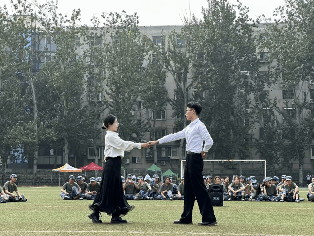 短视频学社高晨飞同学为大家带来了《花海》。他用深情的嗓音和细腻的情感,将歌曲中的意境完美诠释,让在场的每一个人都沉浸在了这片“花海”之中,忘却了军训的辛劳。