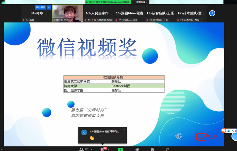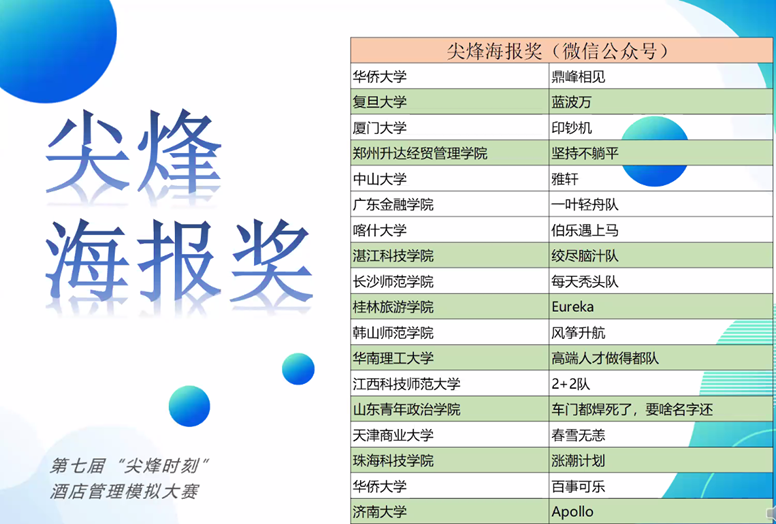 尖峰时刻Cesim Peak赛事源于北欧芬兰,是具有全球知名度和认可度的国际性商业模拟赛事,包含多个分项赛事,其中的酒店管理模拟比赛自引入中国以来,已经举办了七届。今年由华侨大学和Cesim公司联合主办,赛事吸引了中山大学、复旦大学、厦门大学等98所国内高校518支队伍参赛,是“尖烽时刻”酒店赛事诞生以来规模最大的一届,经过初赛、复赛的比拼,最终来自53所高校的54支队伍进入全国总决赛。bat365官网bat365正版唯一官网共组织参赛40支队伍(160人),17支进入复赛,1支挺进全国总决赛。